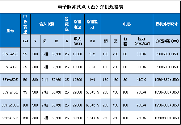 電極形式及原料功能的波及:由于電極的觸碰面積決策著電流密度,電極原料的電阻率以及導熱性關系著熱量的發生以及散失,因而,電極的形式以及原料對熔核的造成有顯赫波及。跟著電極端頭的變形以及磨損,觸碰面積增大,焊點強度將下降。