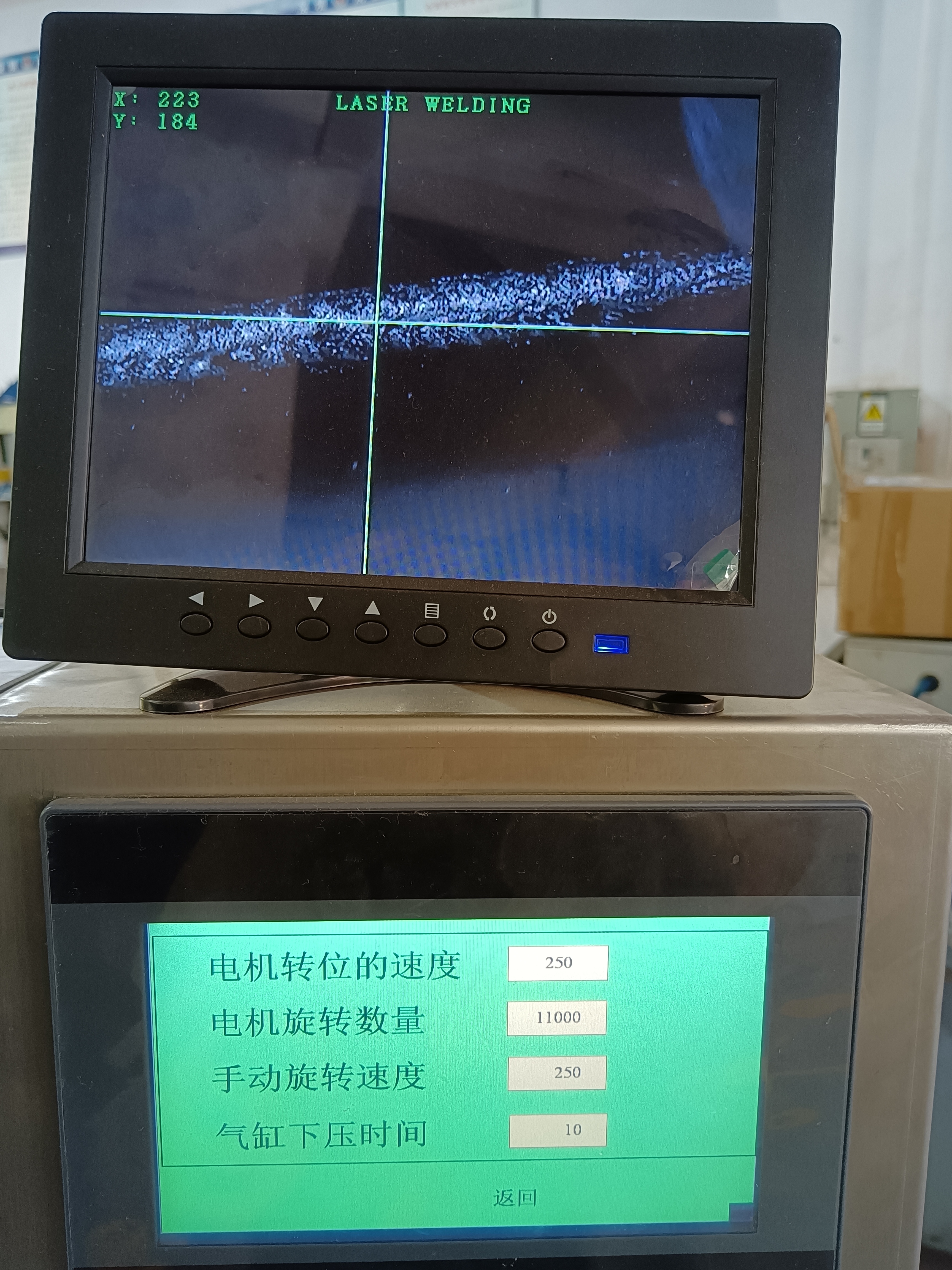 4、當參數調試好之后,可以進入產品焊接工序。將焊件置于兩電極之間,踩下腳踏板,并使上電極與焊件接觸并加壓,在繼續壓下腳踏板時,點焊機執行焊接動作。焊接過程包括預壓、加壓、預熱焊接、焊接、回火焊接、維持等階段,而這些階段的參數設置在焊接規范里都可以根據需要來調節。一般情況下,普通產品的焊接不需要三次放電焊接,所以預熱和回火兩個階段一般可以設置為0即可。