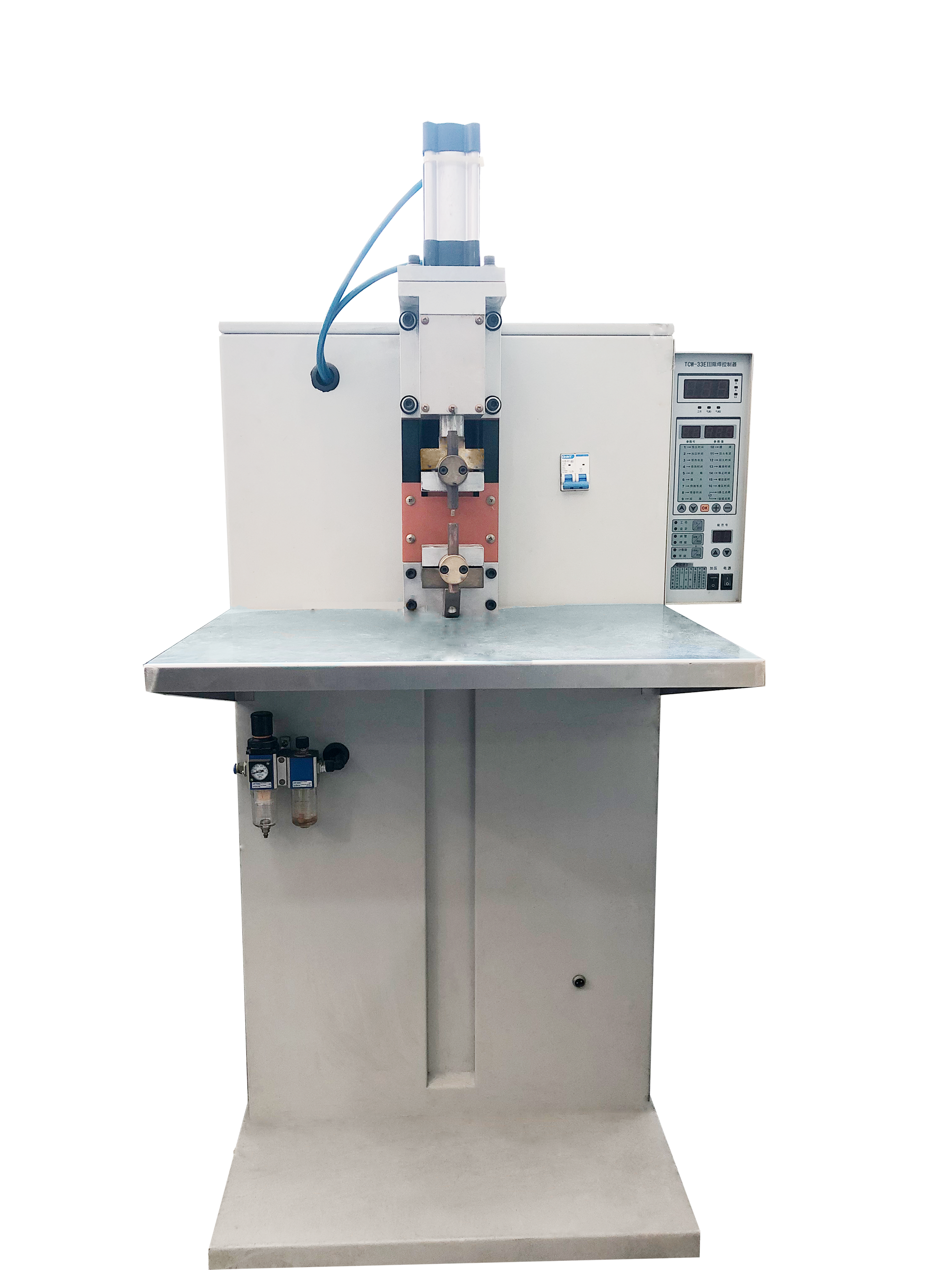 2、打開點焊機電源,通氣,通水,蘇納爾提醒大家一定不能忘記通水,這不但會影響產品的焊接質量,同時也影響點焊機的使用安全和使用壽命。